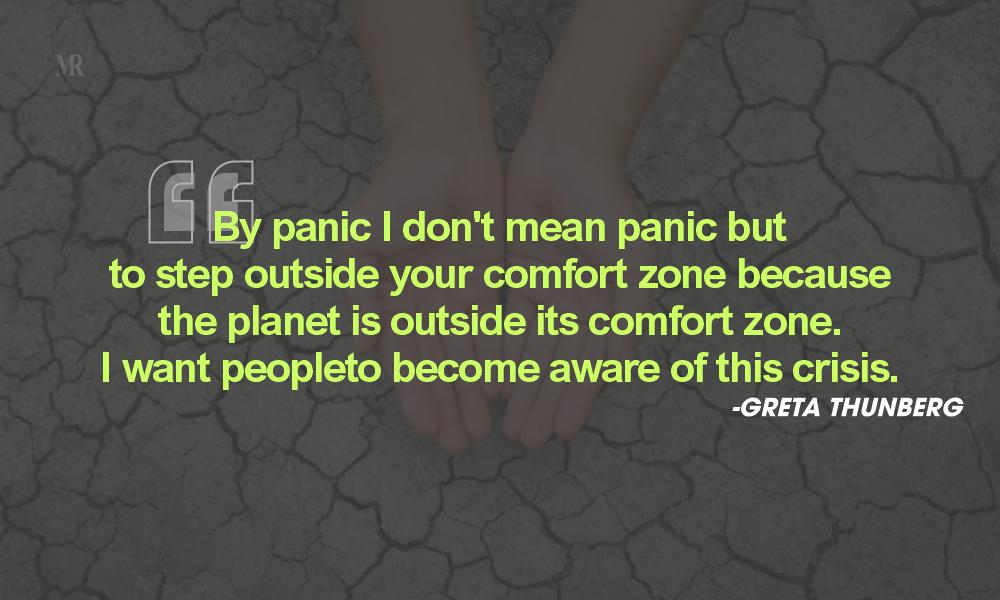 - “By panic I don’t mean panic but to step outside your comfort zone because the planet is outside its comfort zone. I want people to become aware of this crisis.”